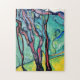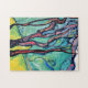 Ce paysage abstrait moderne présente une belle scène avec plusieurs arbres debout dans les contreforts de montagne avec plusieurs montagnes dans l'arrière - plan. Ce puzzle coloré présente des teintes bleues, vertes, turquoises, jaunes, brunes et noires avec une touche de tons rouges. Il s'agit d'un complément parfait à une soirée de jeu en famille ou un grand cadeau pour quiconque aime les puzzles ou l'art abstrait.