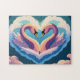 Cette conception de puzzle présente un couple de cygnes debout face à face tout en formant un coeur sur les nuages. C'est un design magique pour les cadeaux romantiques.