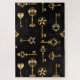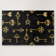 Seamless pattern of antique, gold and silhouette keys on black background.