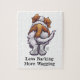 Saint Bernard Dog Butt, Less Barking More Wagging t-shirts, gifts, and accessories created by Imagine That! Design features our original painting of a St. Bernard Dog from behind, its tail wagging with the words, Less Barking More Wagging. Our funny doggy design is a perfect gift for anyone who loves dogs, puppies, St. Bernard dogs and anything funny. Chipper up and stop complaining, get one today and be happy. Go ahead, start wagging and spread some smiles.