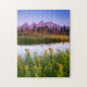 Cette photo comporte l'atterrissage de Schwabacher dans l'ombre du grand et les montagnes et ce de Teewinot est réflexion dans la piscine de la rivière Snake.