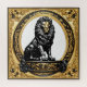 Le Lion on a Gold and Black Ornamental Frame est une pièce royale et puissante qui attire l'attention. Sur fond de noir riche aux accents dorés chatoyants, la crinière majestueuse et l'expression féroce du lion sont magnifiquement capturées, ajoutant une touche de force et de beauté.