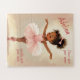 Cute personalized puzzle for little girls with an illustration of a little African-American girl ballerina in a pink tutu in a watercolor style and a sweet ballet themed quote. Add your daughter's name in the personalize area.