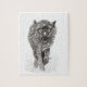 Puzzle Loup noir en colère dans la neige, hiver sauvage