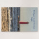 Un des trois feux à Muskegon, Michigan. Des vagues s'écrasent sur la plage par un beau jour de fin d'automne.