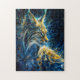 Puzzle lynx bobcat baigné de lumière néon jaune bleu