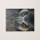 Casse-tête avec macro /close vers le haut de photo d'un visage noir et blanc de hiboux de scops.