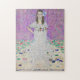 Portrait célèbre de Mada Primavesi par Gustav Klimt. Ce tableau présente une fille en robe blanche avec des fleurs devant un arrière - plan violet. De belles couleurs sur cette oeuvre.