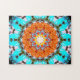 Puzzle Mandala en forme d'étoile bleu et orange lumineux