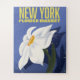 marché aux fleurs de new york affiche de voyage de style vintage d'une belle fleur blanche.