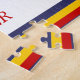 Puzzle personnalisé personnalisé. Partie de la décoration sur le thème marin de l'océan. Coastal Cute Navy Bleu Rouge Jaune Voilier Blanc Puzzle rayé. Nos conceptions nautiques sont parfaites pour la vie côtière, le décor de lac, le décor de rivière, nautique, et plus...
