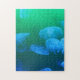 Photographie atmosphérique de la natation transparente de méduses en mer bleue/verte.