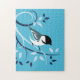 Art d'oiseau décoratif sur puzzles de mésange perché sur une branche stylisée en forme de spirale.