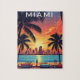 Capture the vibrant spirit of Miami with this retro-inspired poster featuring the city’s iconic skyline at sunset. Framed by swaying palm trees and classic vintage cars parked along the beach, this artwork blends tropical vibes with nostalgic charm. Perfect for coastal décor, retro art collectors, or anyone who loves the energy of Miami’s golden hour.