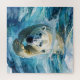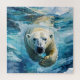 Mirage Arctique : Le Monarque Nageur. Une visualisation époustouflante d'un majestueux ours polaire émergeant de l'eau glacée, capturée dans des coups de pinceau fluides et stylisés à l'aquarelle. L'interaction de la lumière et de l'eau crée un effet éthéré, comme si l'ours polaire existait entre deux mondes - la réalité et le rêve.
