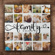 Puzzle de collage photo personnalisé moderne avec espace pour 20 photos entourant un script tourbillonnant tendance lisant FAMILY et votre nom personnalisé ci-dessous.