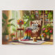 This cheerful "Mom's Reading Nook" jigsaw puzzle transforms a cozy reading nook into a vibrant retreat, celebrating the warmth and joy of motherhood. A plush armchair, adorned with a colorful knit blanket and a "Best Mom Ever" pillow, sits at the heart of the scene. Surrounding the chair are large potted plants with lush greenery, while bright flowers in vivid pinks, yellows, and oranges add pops of color. A small wooden table holds a vase of fresh blooms and books, with sunlight streaming through a window to illuminate the space. A playful orange kitty rests contentedly on the soft rug, adding charm and a sense of tranquility. This jigsaw puzzle embodies comfort, relaxation, and the love of a mother’s nurturing presence. It invites viewers into a space that feels like a warm hug, perfect for curling up with a book and enjoying a peaceful moment. Ideal as a Mother's Day gift, this puzzle celebrates mothers as the heart of the home and the creators of serene, joyful spaces.