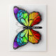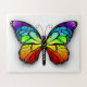Papillon monarque réaliste dans toutes les couleurs de l'arc-en-ciel sur un arrière - plan blanc. Papillon arc-en-ciel.