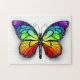 Papillon monarque réaliste dans toutes les couleurs de l'arc-en-ciel sur un arrière - plan blanc. Papillon arc-en-ciel.