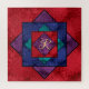 Quatre couleurs différentes se complètent dans ce design de courtepointe avec un monogramme jaune au centre.