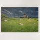 Puzzle Moutons avec moulins à vent sous des nuages sombre