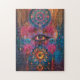 Ce puzzle coloré présente une entité mystique de style hindou avec un oeil de couture. C'est un casse-tête amusant.
