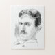 Nikola Tesla portrait in black and white custom jigsaw puzzles. Gift idea for engineers, physics teachers and science students.