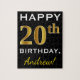 Cette conception de puzzle présente le message "Joyeux 20e anniversaire", avec le "20e" ayant une apparence fausse or. Il comporte également un nom customisé et un arrière - plan de couleur noire. Il pourrait être donné à quelqu'un qui célèbre son vingtième anniversaire.