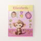 Puzzle de 30 pièces pour enfants. Avec un mignon singe, avec des étoiles et des coeurs d'amour. Ajoutez un nom, une initiale et une photo. Plan de couleurs : rose et jaune Idée cadeau pour enfants.