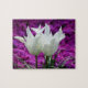 Un petit puzzle de 2 tulipes blanches sur un arrière - plan à fleur de fushia.