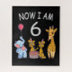 Joyeux 6e anniversaire. Funny and lovely Kids Birthday design with a cute Elephant, two ferrets and a girafe celebrating your birthday at the zoo.