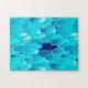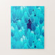 Puzzle dans des nuages stylisés en gradients soyeux d'aqua, bleu turquoise, et turquoise, accentués par des aperçus du ciel bleu indigo foncé. Dans les traditions japonaises, les nuages représentent l'élégance et le statut élevé. Dans le bouddhisme, les nuages signifient le "Paradis occidental" au-delà de la terre