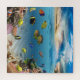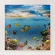 Ce décor océanique lumineux présente une scène sous-marine avec divers coraux colorés et poissons tropicaux. Le ciel montre les couleurs brillantes d'un coucher de soleil tropical.