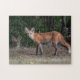 Un renard rouge furtif au bord de la forêt garde un oeil sur un frère.
