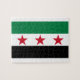 Le drapeau tricolore vert-blanc-noir de 1932 de la Syrie. L'ancien drapeau de la Syrie, utilisé avant le coup d'état baathiste jusqu'en 1963, a été largement utilisé par les manifestants comme drapeau de l'opposition et a été adopté officiellement par le Conseil National Syrien et l'Armée Syrienne Libre.