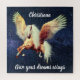 Ce magnifique design présente un magnifique palomino pegasus doré sous un ciel étoilé. Le texte dit : "Donnez vos ailes de rêves."