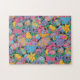 Puzzle de 11" x 14" avec une image de paniers de Pâques rose, bleu, jaune et violet en osier, oeufs de Pâques joliment décorés dans les teintes de bleu, rose, jaune, vert et violet, violettes, jonquilles jaunes et poussins. Voir la collection Pâques Puzzle dans sa catégorie HOME dans la section VACANCES.