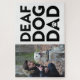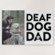 Le texte noir "Deaf Dog Dad" est empilé en trois lignes de texte en majuscules. Le "a" dans "Papa" a une patte blanche à l'intérieur. Personnalisez ce puzzle avec une photo de vous avec votre chien sourd! Photo de Pixabay : https://www.pexels.com/photo/man-wearing-black-and-brown-fur-hoodie-jacket-and-blue-pants-holding-dog-leash-beside-white-short-coat-dog-159557/