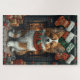 Puzzle Papillon Chien avec les cadeaux de Noël cheminée