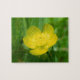 Enseveli dans la haute herbe verte est une tasse à beurre jaune ensoleillé qui brille avec des gouttes de pluie fraîches.