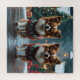 This festive design captures the joyful spirit of the holiday season, featuring an adorable dogs.Nestled in a winter wonderland, complete with a decorated Christmas tree, and beautifully wrapped presents. Snowflakes gently fall, adding a magical touch to the scene, while the vibrant colors of the holiday decorations create a warm and cheerful atmosphere.
