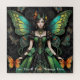 Cette oeuvre richement détaillée représente une figure féminine majestueuse, stylisée comme impératrice papillon. Elle se tient en confiance dans un décor baroque fleuri, ses ailes travaillées mêlant des verts vibrants. Sa robe corsetée présente de la dentelle complexe et des broderies dans les tons verts, incarnant une élégance gothique avec une touche d'imaginaire. Les ailes papillon derrière elle se fondent harmonieusement dans l'environnement, faisant écho aux vrais papillons autour d'elle. Les accents floraux et les bijoux anciens rehaussent l'esthétique royale et surréaliste. L'oeuvre est une fusion de thèmes bohème, gothique et imaginaire avec une touche de peinture.