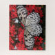 Puzzle Papillon noir et blanc en rouge Flower Bush