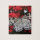 Puzzle Papillon noir et blanc sur Fleurs rouges