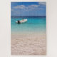 Casse-tête du paradis avec un hors-bord dans l'eau bleue de turquoise de la mer Méditerranée à la petite, blanche plage de Cala Goloritze dans le Golfe d'Orosei, Sardaigne, Italie.