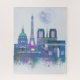 Paris Skyline Watercolor Splash Blue par Fab Funky. Il présente les célèbres monuments de Paris dans un style aquarelle.