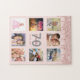 Un cadeau glamour et unique de 70ème anniversaire ou de gardienne, célébrant sa vie avec un collage de 8 de vos photos. Personnalisez et ajoutez un nom, 70 ans et une date. Lettres gris et rose foncé de couleur or. Elégante et tendance couleur arrière - plan rose vif. Décoré de gouttes de parties scintillant en faux or rose.