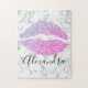 Parties scintillant rose violet moderne lèvres baiser nom puzzle