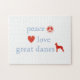 Votre chien Great Dane est-il votre meilleur ami ? Le Grand Danois est-il l'une de vos races préférées de chiens ? Montrez votre amour de ce canine avec ces cadeaux, t-shirts et vêtements de Paix, Amour et Grands Danois.