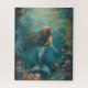 Un tableau de sirène mignonne et magique présente une mignonne sirène nageant sous l'eau avec du mignon poisson orange.